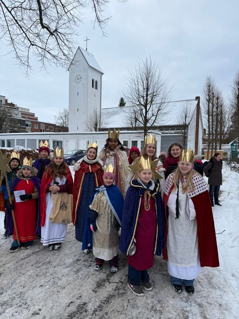 34 Kinder und Jugendliche der katholischen Pfarrei St. Ansverus haben am Wochenende den alten Brauch der Sternsinger gepflegt und sind verkleidet als die „Heiligen Drei Könige“ und ausgestattet mit Kronen, Sternen und Geldschatullen von Haushalt zu