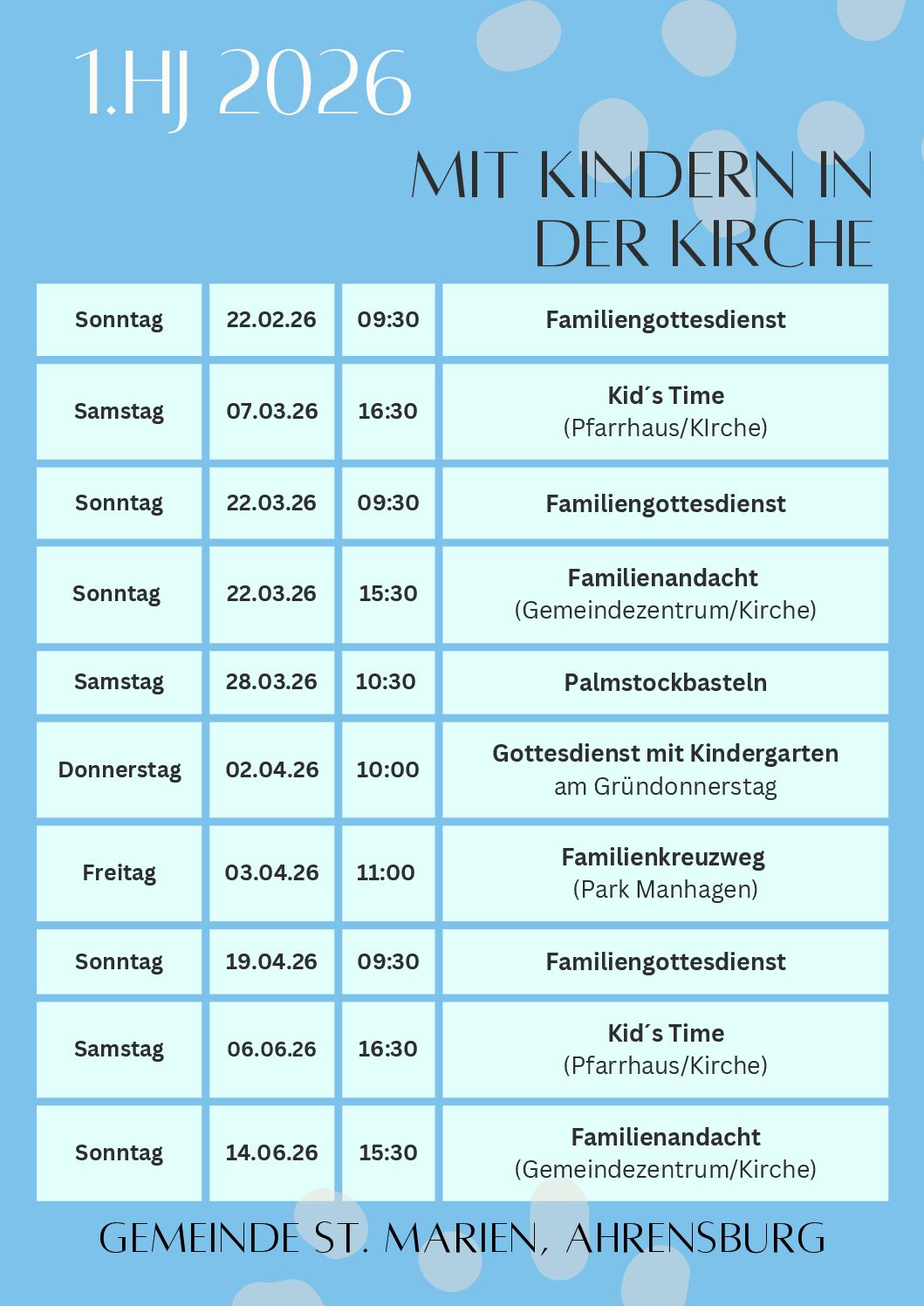 Gottesdienste und Veranstaltungen, die sich besonders für Familien mit Kindern eignen: