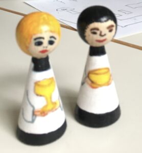 Stehen diese Figuren am Rand des Weihwasserbeckens, heißt das: Heute sind noch keine Messdiener da!